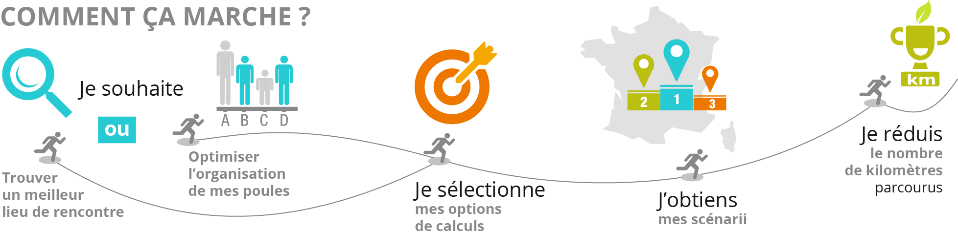 Elle combine géolocalisation d’équipes, de personnes et de lieux, organisation des poules et calcul d’itinéraires pour optimiser le nombre de kilomètres parcourus lors des pratiques sportives ou dans le cadre du fonctionnement du mouvement sportif.